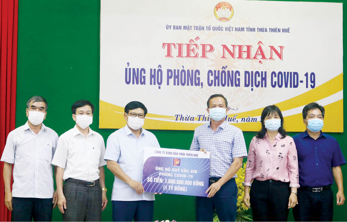 Thay mặt Công ty Xăng dầu Thừa Thiên Huế trao số tiền ủng hộ 1 tỷ đồng, ông Nguyễn Khoa Phong Điền, Chủ tịch kiêm Giám đốc công ty chia sẻ, số tiền trên chỉ mong góp một phần nhỏ bé, chung tay cùng các cấp, các ngành sớm đẩy lùi dịch bệnh tại tỉnh nhà nói riêng và cả nước nói chung