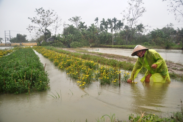 Ông Trần Hiếu Cơ, Chủ tịch UBND xã Phú Mậu cho biết, toàn HTX Phú Mậu 2 hàng năm đưa vào trồng khoảng 5 ha hoa tết các loại. Đến thời điểm này đã có một số diện tích khá lớn chìm trong nước lũ. Do chưa có thống kê cụ thể nên chưa biết thiệt hại đối với diện tích hoa bị ngập”. Theo ông Cơ, hoa tết trồng chậu nhiều hộ dân đã đầu tư hệ thống giàn cao, chống ngập nước. Còn đối với hoa cúc tết trồng trên luống, qua nhiều mùa vụ bà con đã tôn nền cao. Chỉ có những diện tích thấp trũng nguy cơ thiệt hại rất cao.