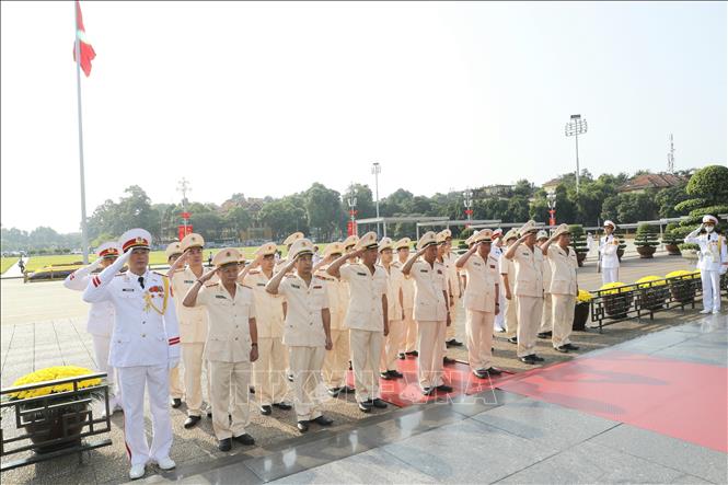 Đoàn đại biểu Đảng ủy Công an Trung ương và Bộ Công an đến đặt vòng hoa và vào Lăng viếng Chủ tịch Hồ Chí Minh. Ảnh: Doãn Tấn/TTXVN