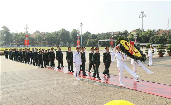 Đoàn đại biểu Quân ủy Trung ương và Bộ Quốc phòng đến đặt vòng hoa và vào Lăng viếng Chủ tịch Hồ Chí Minh.