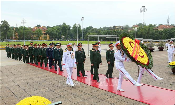Đoàn đại biểu Quân ủy Trung ương và Bộ Quốc phòng tới đặt vòng hoa và vào Lăng viếng Chủ tịch Hồ Chí Minh. Ảnh: Doãn Tấn/TTXVN