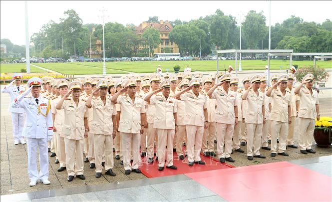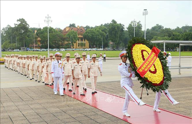 Đoàn đại biểu Đảng ủy Công an Trung ương và Bộ Công an tới đặt vòng hoa, vào Lăng viếng Chủ tịch Hồ Chí Minh. Ảnh: Doãn Tấn/TTXVN
