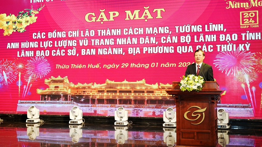 Thay mặt lãnh đạo tỉnh, Bí thư Tỉnh ủy Lê Trường Lưu đã gửi lời chúc sức khỏe, chúc mừng năm mới đến các vị lão thành cách mạng, tướng lĩnh, Anh hùng lực lượng vũ trang Nhân dân, cán bộ lãnh đạo tỉnh qua các thời kỳ.