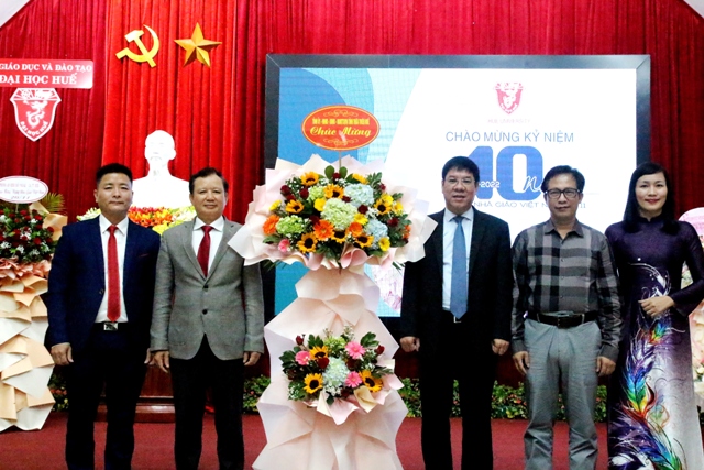Chủ tịch UBND tỉnh Nguyễn Văn Phương tặng hoa chúc mừng các nhà giáo Trường đại học Nông Lâm, Đại học Huế