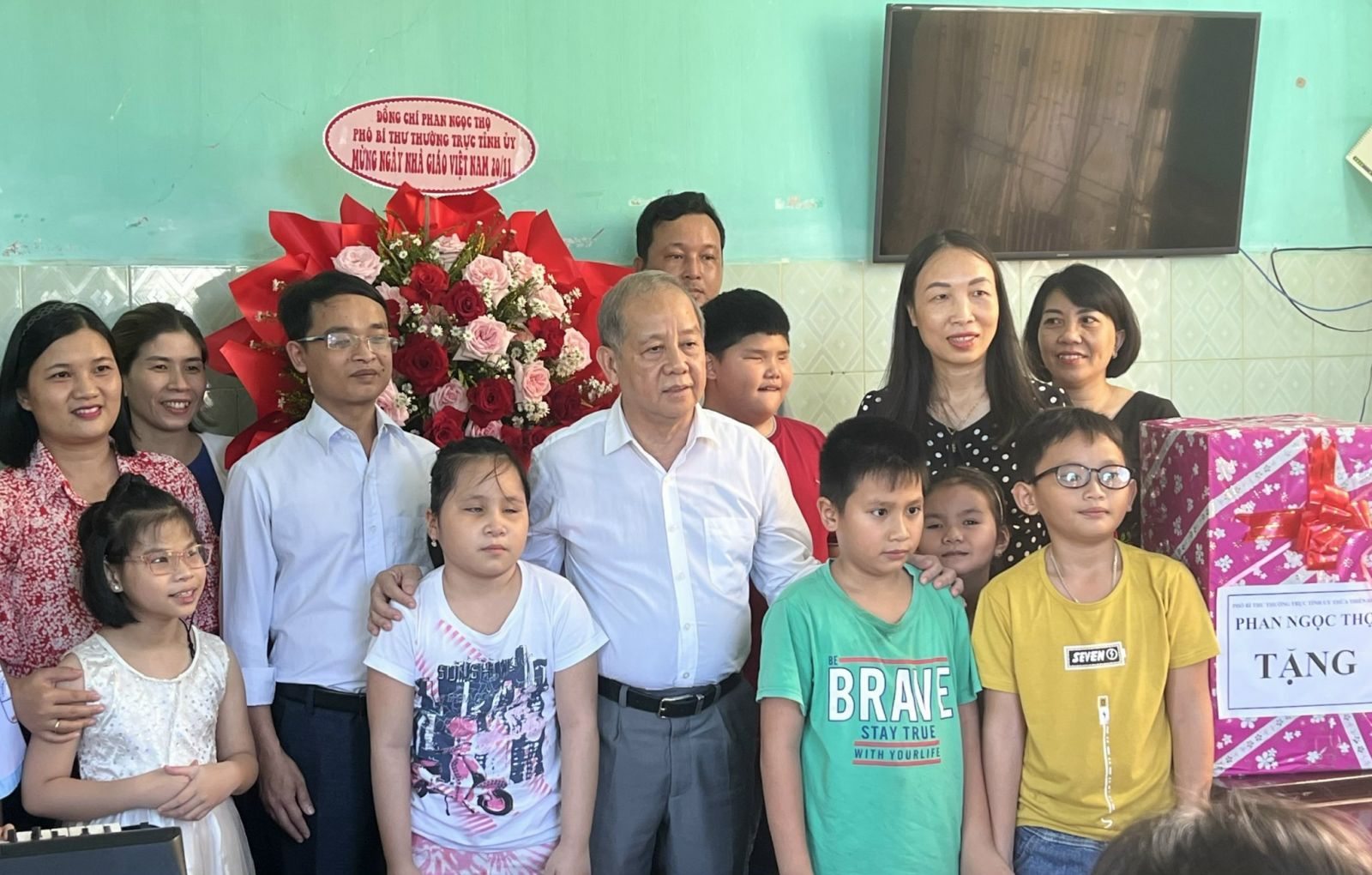 Phó Bí thư Thường trực Tỉnh ủy Phan Ngọc Thọ đã tặng hoa và quà cho các giáo viên, đồng thời, gửi những lời chúc tốt đẹp nhất, tri ân đến những tấm lòng, đôi bàn tay, trái tim nhân hậu của những người làm công tác chăm sóc, nuôi dạy người khuyết tật, người có hoàn cảnh khó khăn; gửi đến những bảo mẫu, nhân viên, giáo viên, những "nhà giáo đặc biệt" lời tri ân sâu sắc, chúc mọi người vui tươi, tràn đầy nghị lực để tiếp tục công việc cao cả đã chọn.
