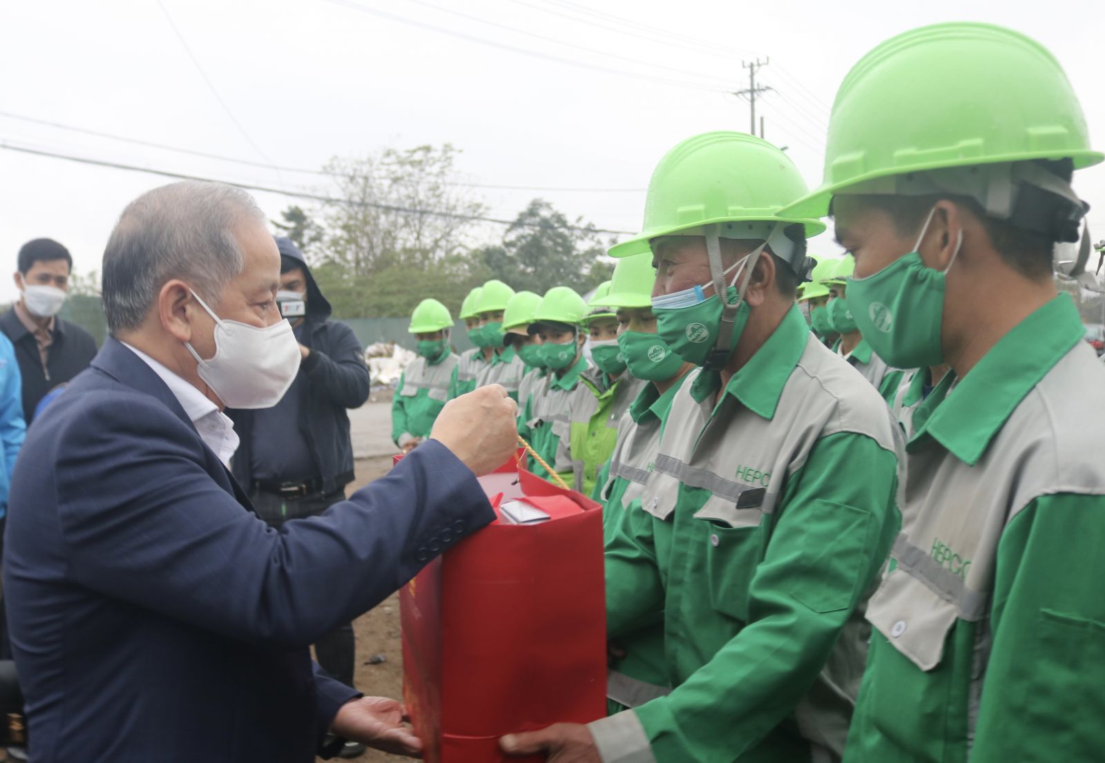 Phó Bí thư Thường trực Tỉnh ủy Phan Ngọc Thọ cùng Ban Thường vụ Tỉnh đoàn thăm, tặng quà tết các công nhân của Công ty CP Môi trường và Công trình đô thị Huế đang trực tiếp thu dọn rác tại điểm tập kết rác thải đường Nguyễn Gia Thiều (phường Phú Hậu, TP. Huế). Ông Phan Ngọc Thọ biểu dương và cảm ơn nỗ lực không mệt mỏi của lực lượng vệ sinh môi trường, những người đang ngày đêm giúp thành phố thêm xanh - sạch - sáng