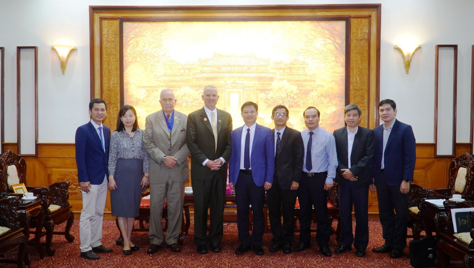 Cùng ngày, Phó Chủ tịch Thường trực UBND tỉnh Nguyễn Thanh Bình cũng có buổi tiếp xã giao đoàn công tác tổ chức Quỹ COFC - Hoa Kỳ do ông William Kaemmer, Giám đốc điều hành làm trưởng đoàn nhân chuyến thăm Huế.