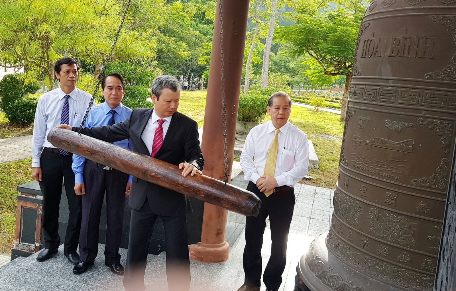 Đoàn lãnh đạo tỉnh thỉnh chuông tại tháp chuông Hòa Bình