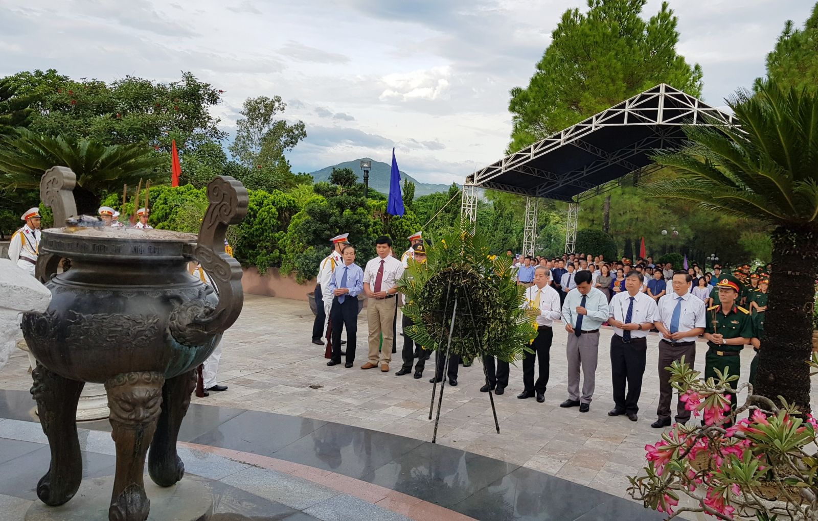 Tại buổi lễ, đại diện lãnh đạo tỉnh đã đánh 7 hồi chuông tại tháp chuông Hòa Bình. Tiếp đến, lần lượt các đoàn đại biểu đã đặt vòng hoa, dâng hương tại đài tưởng niệm.
