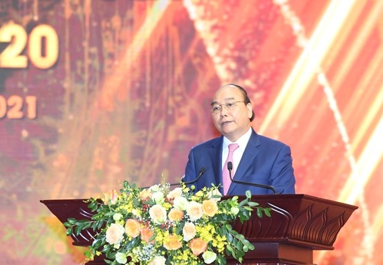 Phát biểu tại buổi lễ, Chủ tịch nước Nguyễn Xuân Phúc biểu dương những đóng góp to lớn, thiết thực; nhiệt liệt chúc mừng những thành tích của đội ngũ những người làm báo cả nước; nhiệt liệt chúc mừng các nhà báo vinh dự được trao Giải Báo chí Quốc gia.