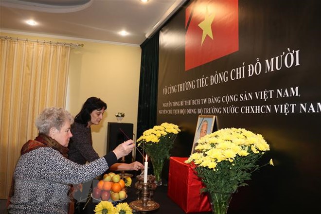 Ngày 5/10, Đại sứ quán Việt Nam tại Cộng hòa Séc tổ chức Lễ truy điệu, lễ viếng nguyên Tổng Bí thư Đỗ Mười và mở Sổ tang để các tổ chức và cá nhân đến chia buồn.