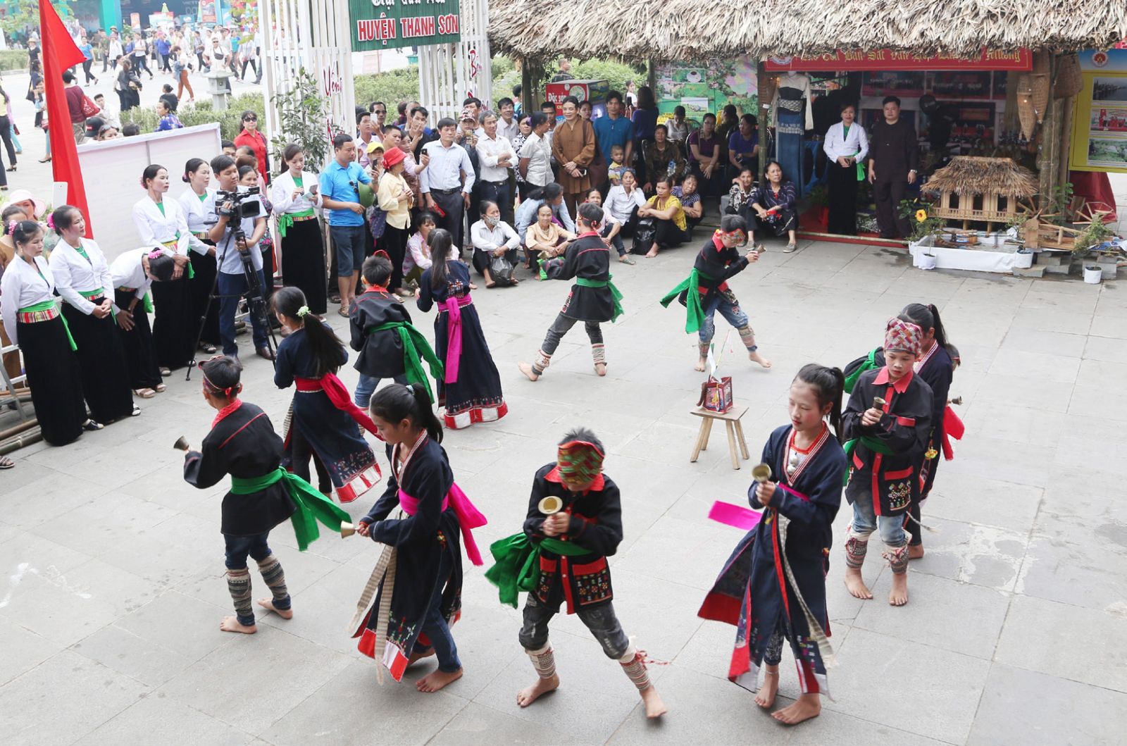 Điệu múa của người Mường tại trại văn hóa, khu Di tích lịch sử Đền Hùng. Ảnh: VIỆT HÀ