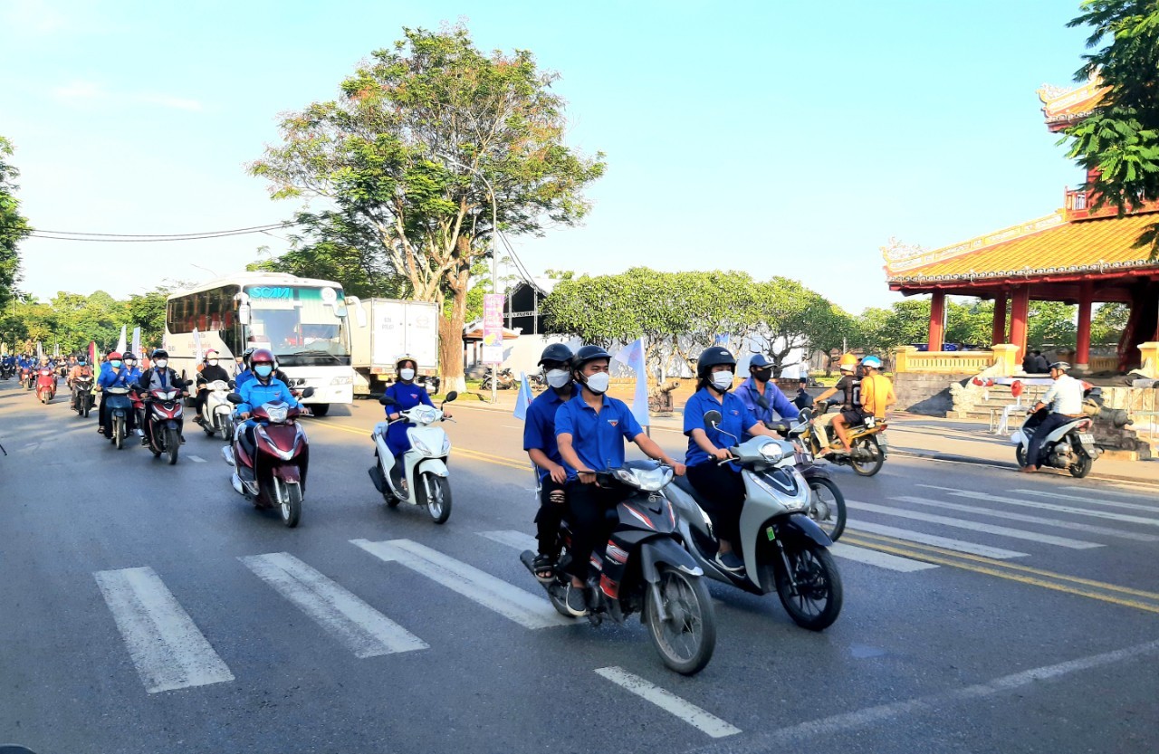 Lực lượng đoàn viên thanh niêm tham gia tuần hành trên đường Lê Duẩn
