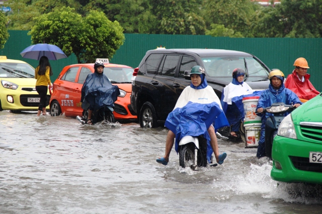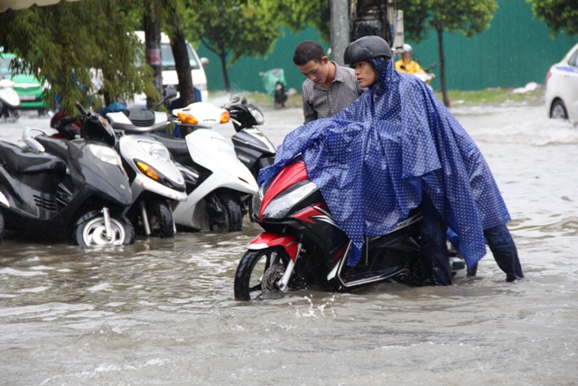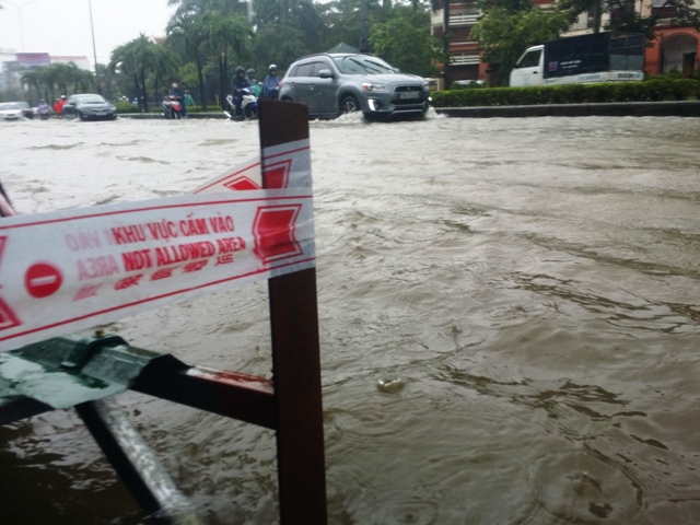 Nước ngập khá sâu trên đường Tôn Đức Thắng