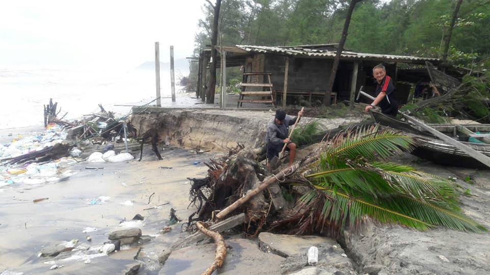 Triều cường khiến sóng đánh mạnh vào bờ tại xã Vinh Hải (huyện Phú Lộc). Ảnh: Đức Quang