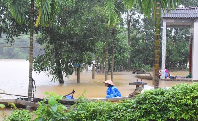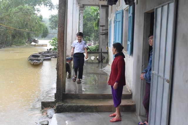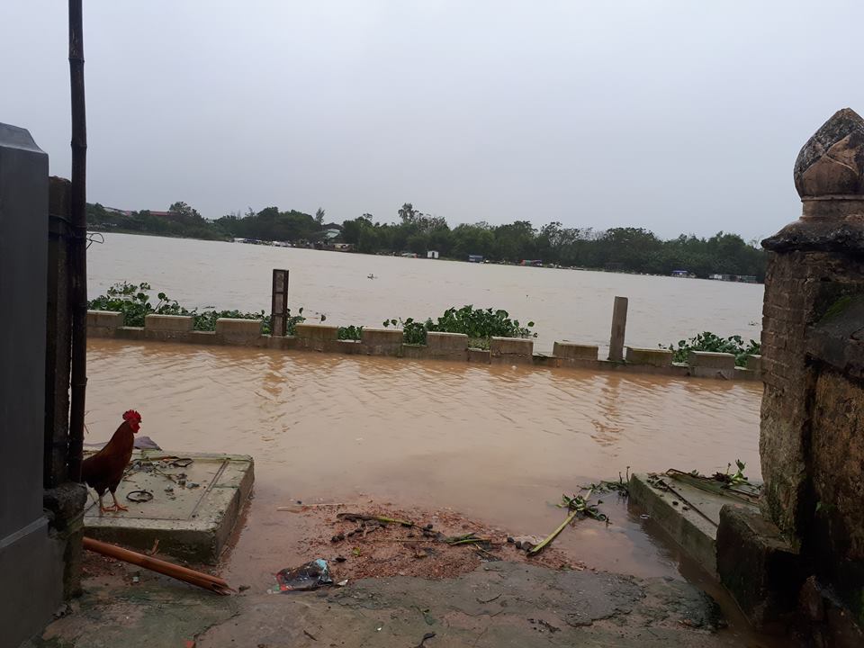 Nước sắp tiến vào sân nhà dân tại thôn Thanh Phước xã Hương Phong (TX. Hương Trà). Ảnh: L.T