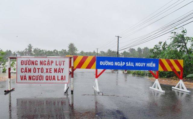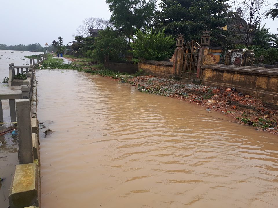 Đường về xã Phú Thanh (Phú Vang) ngập nhẹ. Ảnh: K.Liên