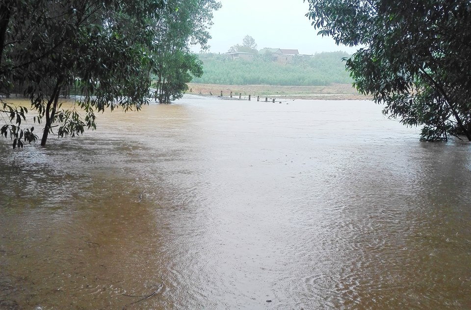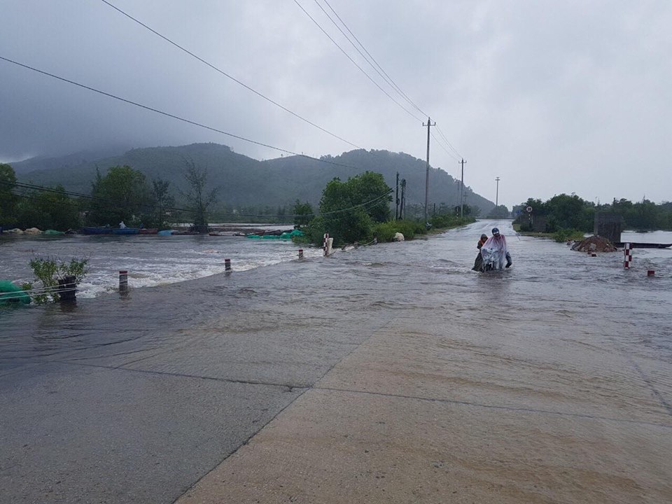 Khu vực đập tràn thôn Phú Hải (Lộc Vĩnh, Phú Lộc) nước ngập sâu 0,6m khiến việc đi lại khá khó khăn . Ảnh: Minh Tuệ