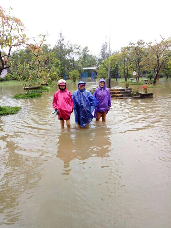 Một ngôi trường ở Phú Lộc ngập nước. Ảnh: C. Hương