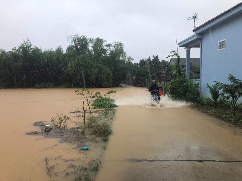 Một tuyến đường ngập nhẹ ở xã Lộc Bổn (huyện Phú Lộc). Ảnh: C. Hương