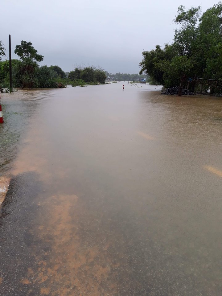 Quốc lộ 49B đoạn qua cầu Trạch phổ, xã Phong Hoà, huyện Phong Điền bị ngập. Ảnh: Hoàng Thị Ngọc