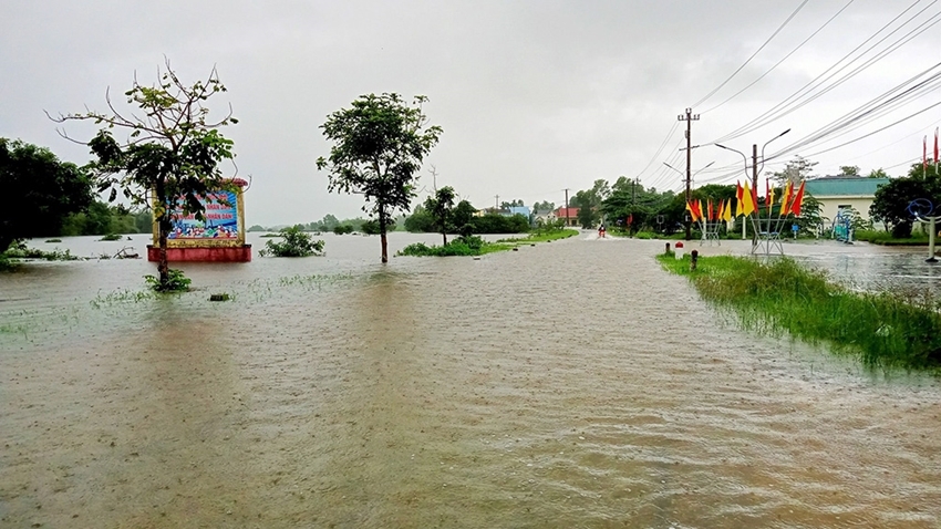 Cụ thể, trên địa bàn huyện đã có 12/16 xã, thị trấn đã bị ngập, chỉ còn các xã vùng Ngũ Điền (Điền Hải, Điền Hòa, Điền Lộc và Điền Môn) giao thông vẫn còn di chuyển được.