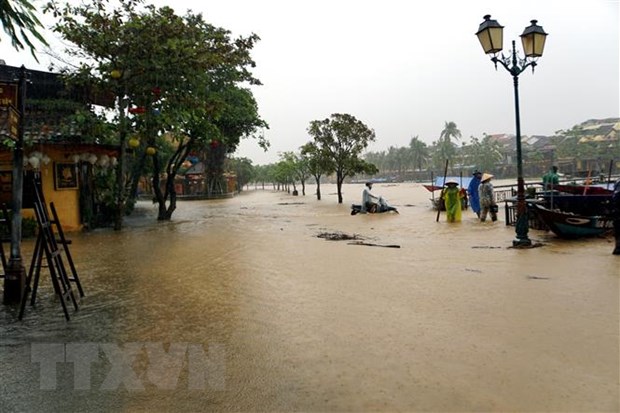 Nước sông Hoài dâng ngập đường Bạch Đằng, thành phố Hội An. Ảnh: Trịnh Bang Nhiệm/TTXVN