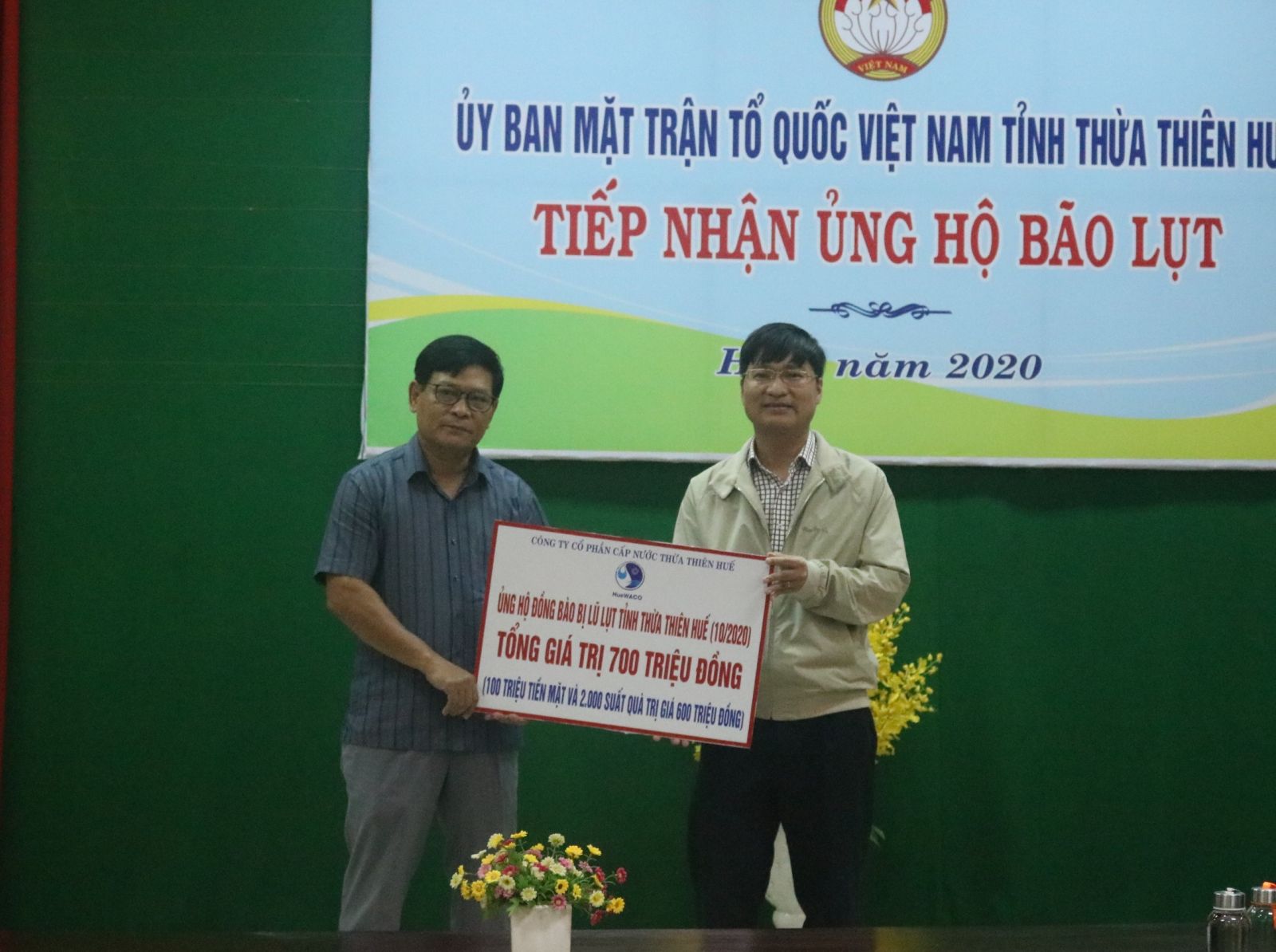 * Sáng 17/10, Công ty CP Cấp nước Thừa Thiên Huế đã trao 700 triệu đồng hỗ trợ đồng bào vùng lũ trên địa bàn.