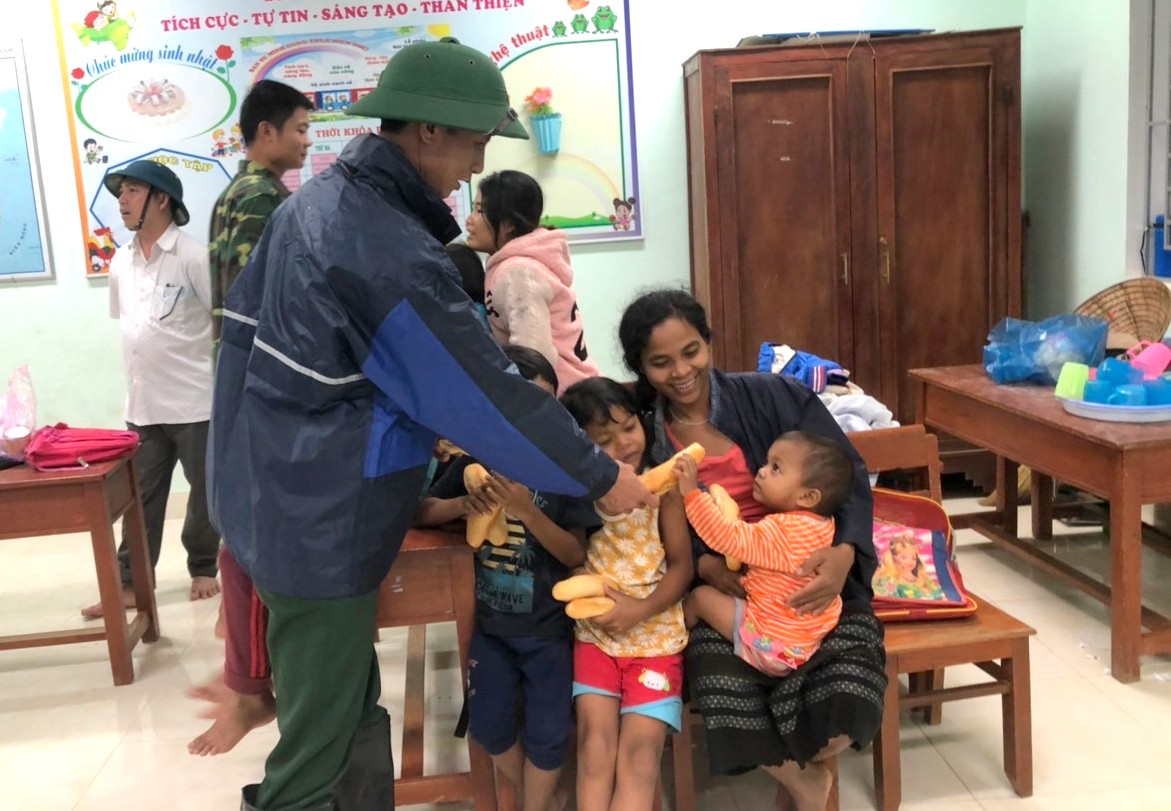 Lực lượng các đơn vị di dời người dân vùng ngập lụt, sạt lở đến nơi an toàn và hỗ trợ lương thực cho họ