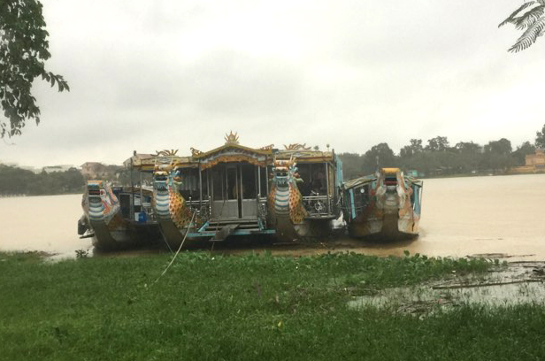 Các thuyền du lịch neo đậu phía gần Nghinh Lương Đình. Ảnh: H.Phan
