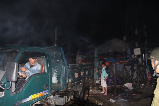 Xe tải cũng được huy động để dọn dẹp lại ngôi nhà bị sập