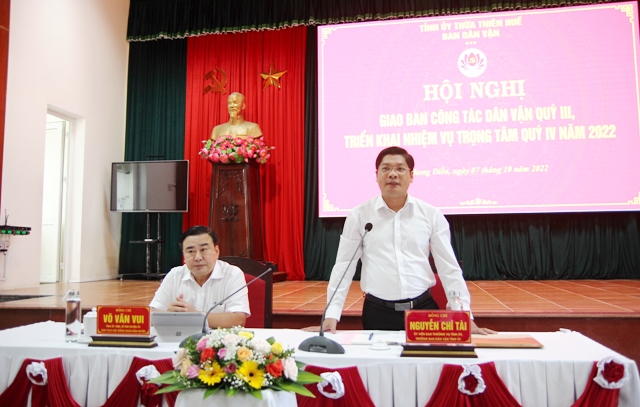 UVTV Tỉnh ủy, Trưởng ban Dân Vận Tỉnh ủy Nguyễn Chí Tài; Bí thư Huyện ủy, Chủ tịch HĐND huyện Phong Điền Võ Văn Vui chủ trì hội nghị giao ban.