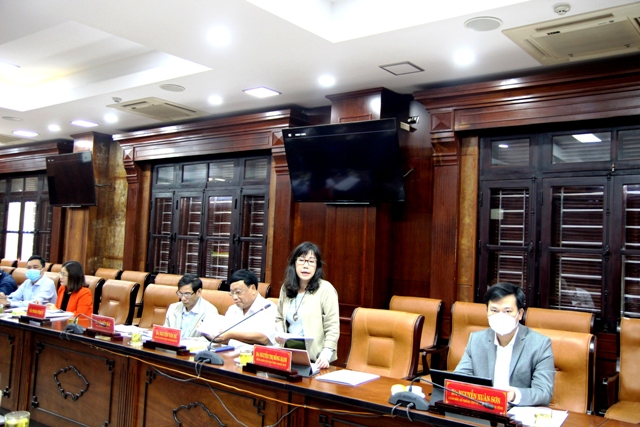 Tổng Biên tập Báo Thừa Thiên Huế Nguyễn Thị Hồng Hạnh phát biểu ý kiến tại buổi làm việc