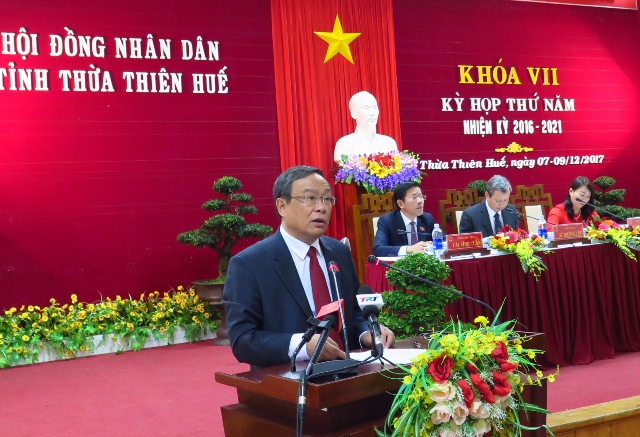 Sau phát biểu khai mạc kỳ họp, Chủ tịch UBND tỉnh Nguyễn Văn Cao đã trình bày báo cáo về tình hình kinh tế- xã hội của tỉnh năm 2017, kế hoạch năm 2018.