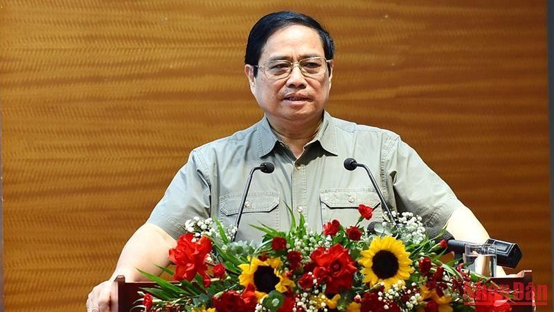 Thủ tướng Phạm Minh Chính phát biểu tại buổi làm việc. (Ảnh: TRẦN HẢI)