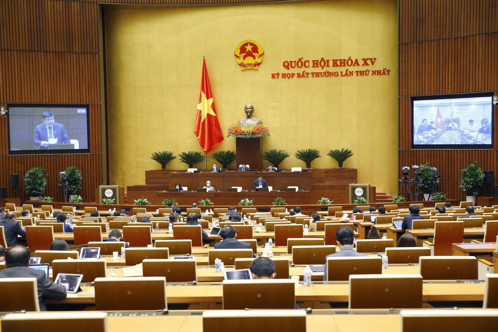 Trước đó, trong chương trình làm việc ngày 7/1, dưới sự điều hành của Phó Chủ tịch Quốc hội Nguyễn Đức Hải, Quốc hội thảo luận trực tuyến về dự thảo Nghị quyết về chính sách tài khóa, tiền tệ để hỗ trợ Chương trình phục hồi và phát triển kinh tế - xã hội.