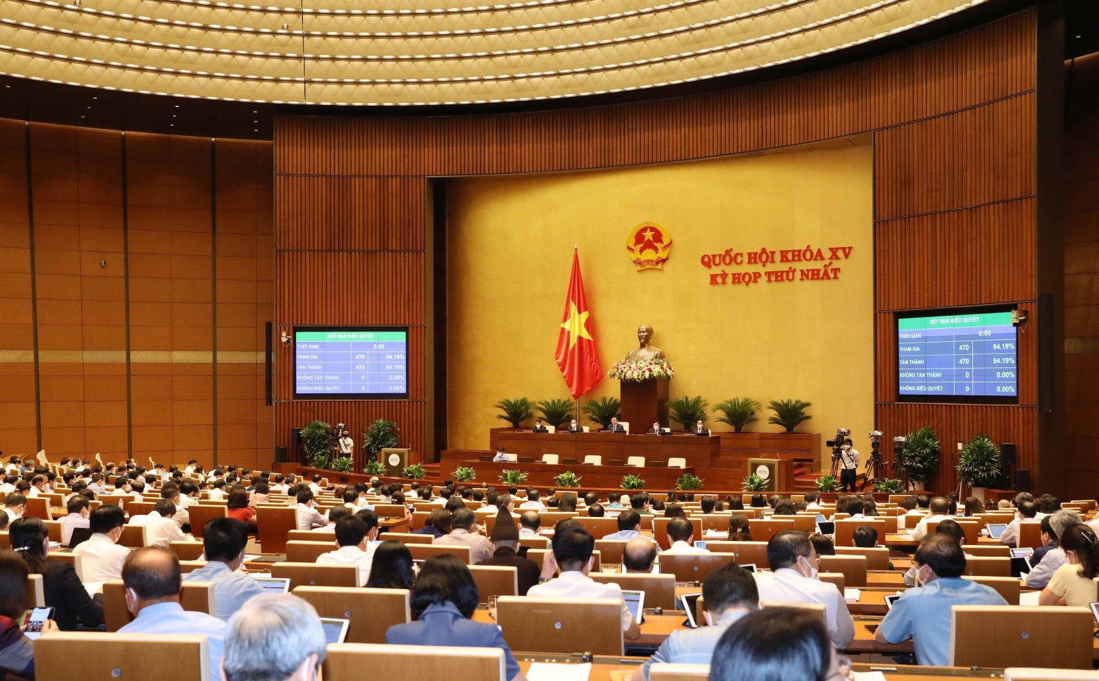 Sáng 23/7/2021, tại Nhà Quốc hội, Quốc hội biểu quyết thông qua Nghị quyết về cơ cấu tổ chức của Chính phủ nhiệm kỳ 2021-2026. Ảnh: Phương Hoa/TTXVN