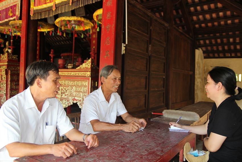 | Người dân làng Bàn Môn nói về lịch sử truyền thống trong những ngày Cách mạng Tháng 8/1945 (Ảnh: Phong Anh) |