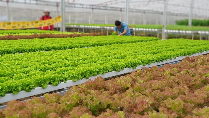 Trồng rau công nghệ cao tại thôn Tây Trì Nhơn, xã Phú Thượng, huyện Phú Vang. Ảnh: Thái Bình