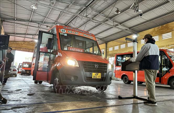 Cán bộ kỹ thuật tại Trạm đăng kiểm 49-01S tại thành phố Đà Lạt (Lâm Đồng) thực hiện quy trình kiểm định cho phương tiện. Ảnh: Nguyễn Dũng/TTXVN