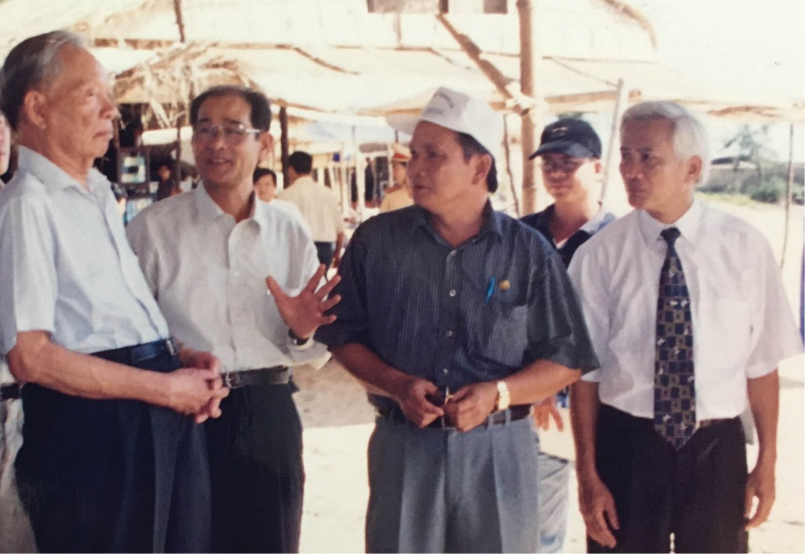 Đại tướng Lê Đức Anh, Cố vấn BCHTƯ Đảng, về thăm vùng biển Phú Vang bị thiệt hại sau cơn "đại hồng thủy" tháng 11/1999. Ảnh: HK