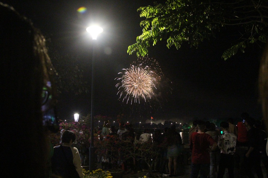 Từ đường đi bộ gỗ lim ở bờ Nam sông Hương, hàng ngàn người reo vui, tay trong tay bên nhau trong thời khắc ý nghĩa. Ở góc này, mọi người hướng về Kỳ đài để ngắm không gian pháo hoa tuyệt đẹp giữa tiết trời tết tạnh ráo xứ Huế. “Cầu chúc cho một năm cũ ra đi trong nhẹ nhàng, và chờ đón mọi sự vui mới, may mắn ở phía trước trong mỗi người…”, Nguyễn Ân Hoài (TP. Huế) chia sẻ.