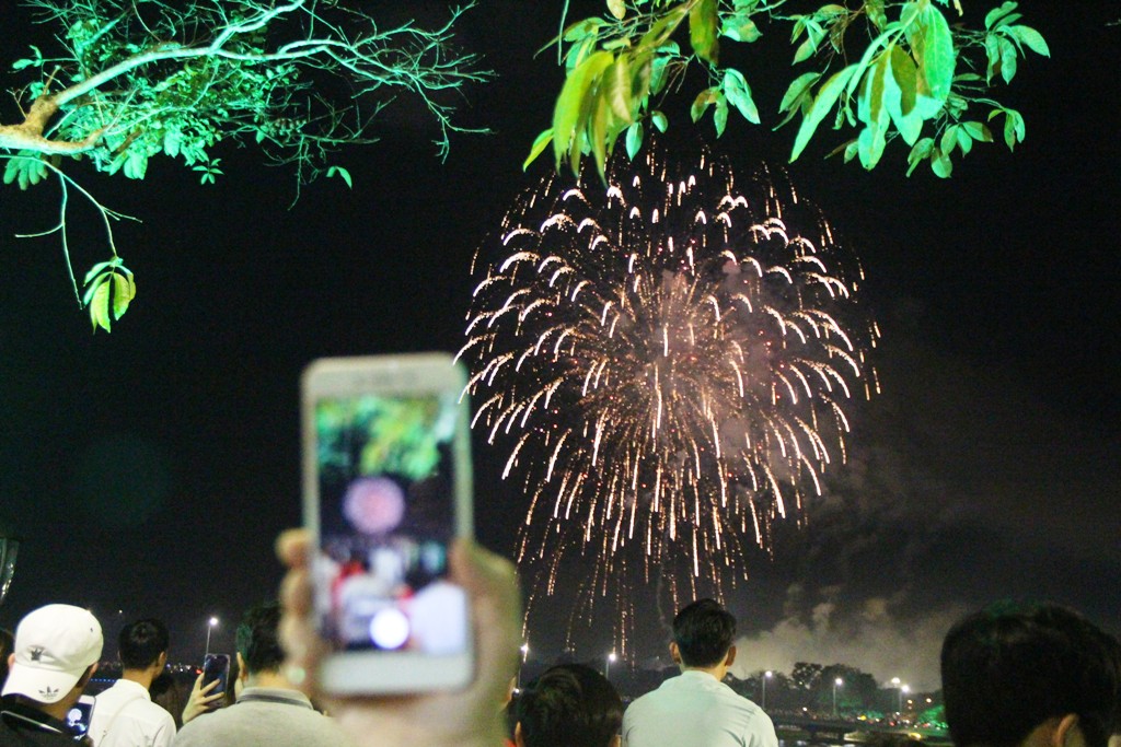 Pháo hoa tung giữa bầu trời rất ấn tượng