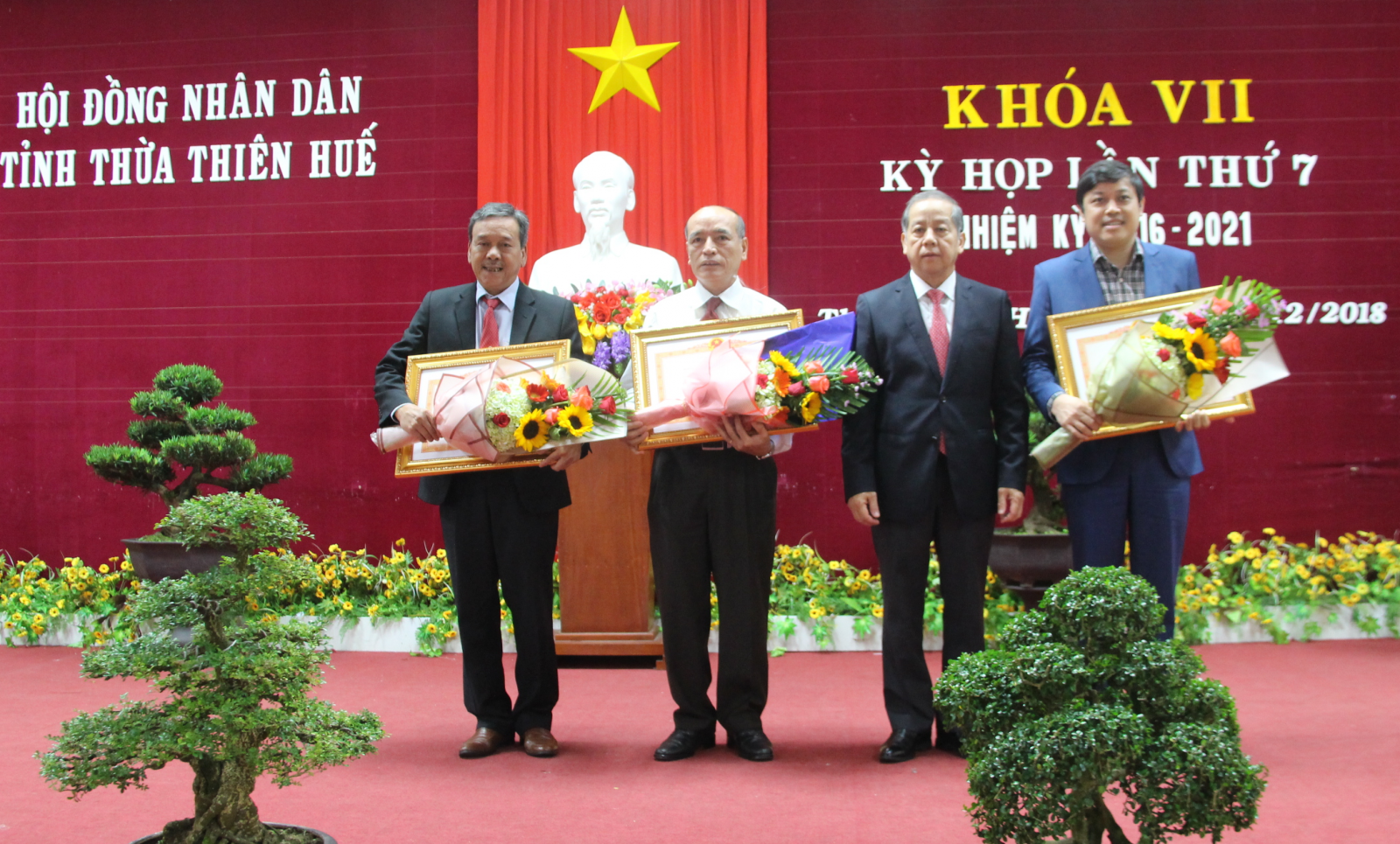 Các ông Nguyễn Thái Sơn, Trưởng Ban Tuyên giáo Tỉnh ủy; Nguyễn Hồng Sơn, Chủ tịch HĐQT Công ty CP Môi trường và Công trình đô thị Huế; Dương Đức Huy, Chủ tịch Công ty TNHH NN 1TV Xổ số kiến thiết Thừa Thiên Huế; bà Võ Thị Xuân Hương, Giám đốc Trung tâm Trợ giúp pháp lý Nhà nước, Sở Tư pháp được tặng thưởng Huân chương Lao động hạng Ba.