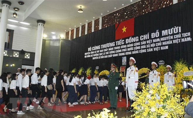 Đoàn Trung ương Đoàn Thanh niên Cộng sản Hồ Chí Minh do đồng chí Lê Quốc Phong, Ủy viên dự khuyết Trung ương Đảng, Bí thư Thứ nhất Trung ương Đoàn dẫn đầu vào viếng nguyên Tổng Bí thư Đỗ Mười. (Ảnh: TTXVN)