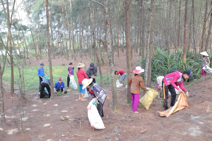 Người dân TX. Hương Trà tham gia thu gom rác tại rừng dương ven biển