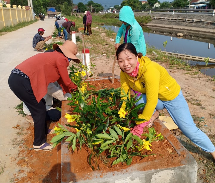 Người dân tham gia trồng tuyến đường hoa ở Vinh Mỹ, Phú Lộc