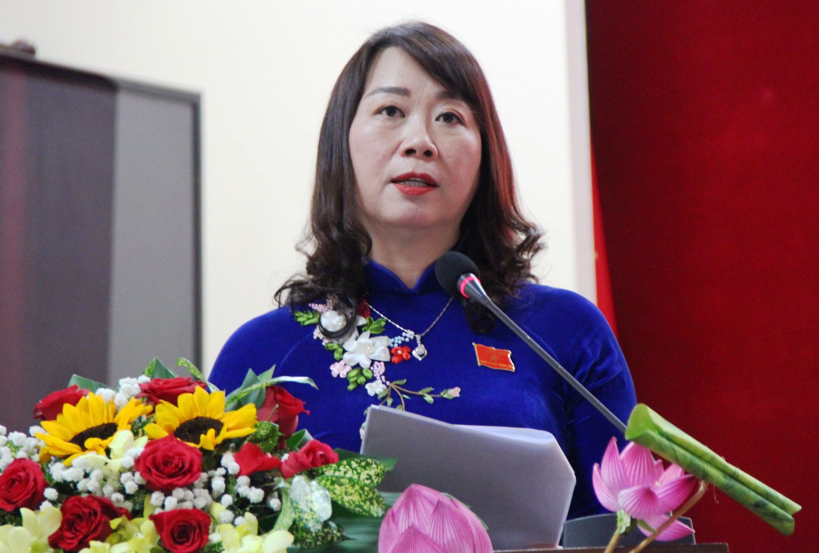 Phó Chủ tịch HĐND tỉnh Nguyễn Thị Ái Vân trình bày báo cáo tổng hợp ý kiến cử tri tại Kỳ họp thứ 5, HĐND tỉnh Khóa VIII