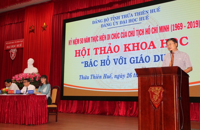Phát biểu tại hội thảo, ông Nguyễn Thái Sơn, UVTV, Trưởng ban Tuyên giáo Tỉnh ủy đánh giá cao công tác tổ chức cũng như nội dung, giá trị ý nghĩa của hội thảo, đồng thời mong các cán bộ, giảng viên, học viên, sinh viên nói riêng và ĐH Huế nói chung sau hội thảo sẽ tiếp tục thực hiện tốt những nội dung di chúc của Chủ tịch Hồ Chí Minh; tiếp tục đẩy mạnh thực hiện Chỉ thị 05 của Bộ Chính trị về học tập và làm theo tư tưởng, đạo đức, phong cách Hồ Chí Minh gắn với đẩy mạnh công tác xây dựng Đảng…
