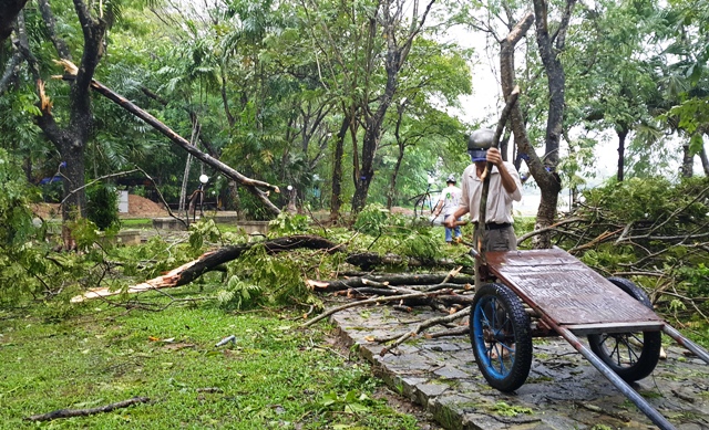 Ngay sau đó, các nhân viên Trung tâm Công viên cây xanh cũng đã có mặt để giải phóng mặt bằng những khu vực có cây gãy đổ để các phương tiện dễ dàng lưu thông. Đến 8g 30sáng các tuyến phố về cơ bản đã được thông thoáng.